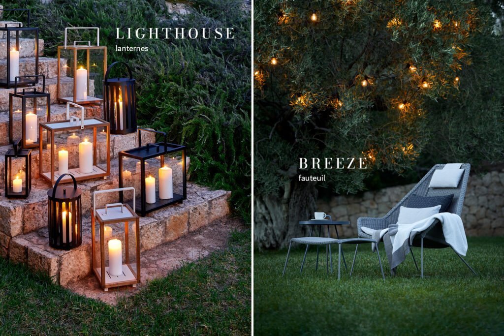 Chez Cane-line, la vie en plein air prend une toute nouvelle dimension. Il est question de plaisir, de composer avec le détail et l’accessoire. Lorsque nous mettions en place notre toute première exposition Cane-Line chez Villa Romana, le responsable commercial Mr. Larsen nous expliqua longuement comment donner vie aux meubles grâce aux petites choses : une table-plateau accueillant un verre de vin, une lanterne avec une bougie préférée, une collection d’épices et d’herbes posées dans l’étagère près du canapé qui dégage ses effluves gourmandes, les magazines à moitié lus qui trainent sur la table basse ou les bûches rangées dans un panier en attente d’une soirée autour du feu.